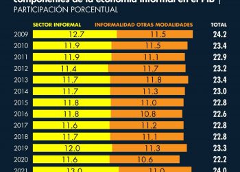 La economía informal aportó 25.4% del PIB nacional en 2024, su nivel más alto en al menos quince años. El ...