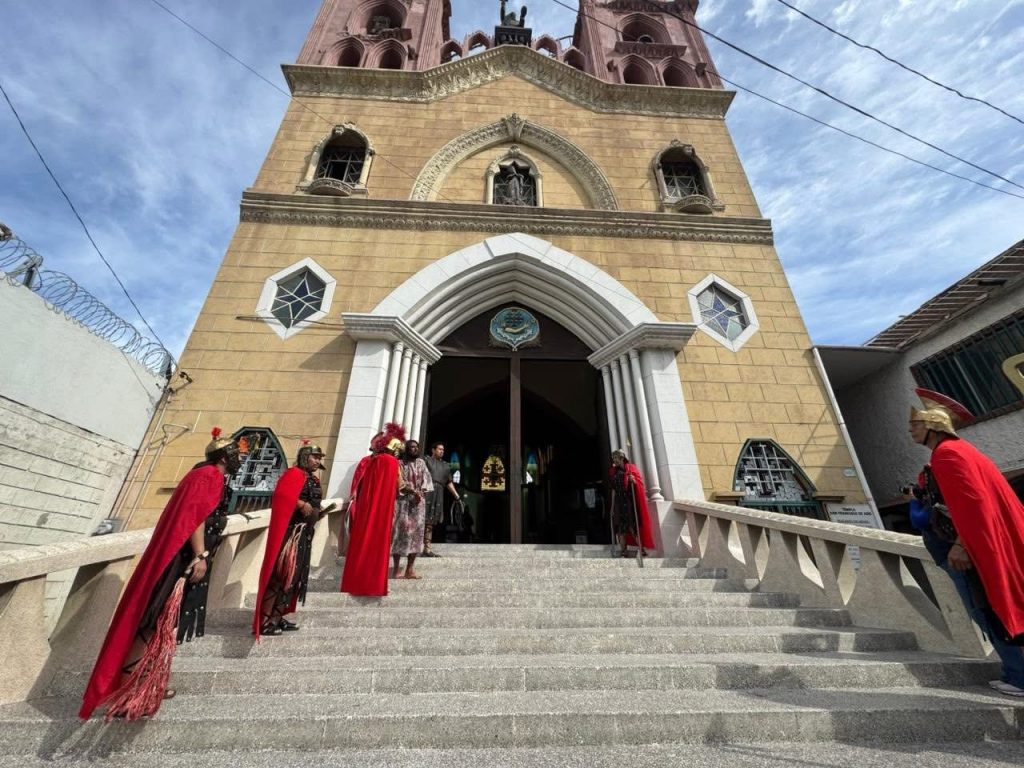 El Viacrucis de la Zona Centro ya se encuentra en marcha. Decenas de creyentes católicos participan en esta representación que inició a las afueras de la iglesia San Francisco de Asís, ubicada sobre la calle Tercera, frente al parque Teniente Guerrero.