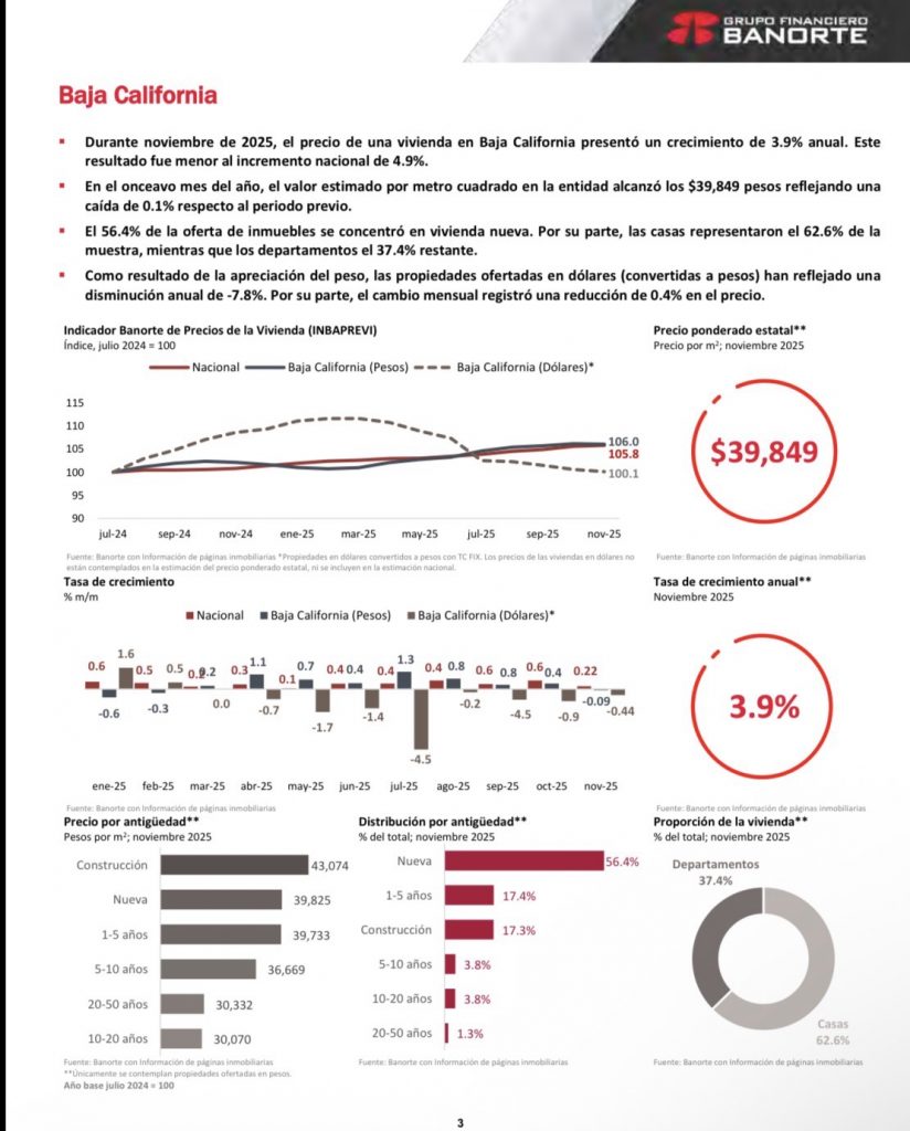 La conclusión es contundente: Baja California no es un mercado más en las estadísticas nacionales; es un termómetro estratégico. Lo que pasa aquí —precios altos, predominio de vivienda nueva, presión fronteriza, impacto del dólar— anticipa tendencias que meses después suelen replicarse en otras regiones.